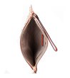 O geantă dreptunghiulară cu elemente decorative metalice pe față. Are un mâner lung la încheietura mâinii și se închide cu fermoar. Design compact, potrivit pentru utilizare zilnică.