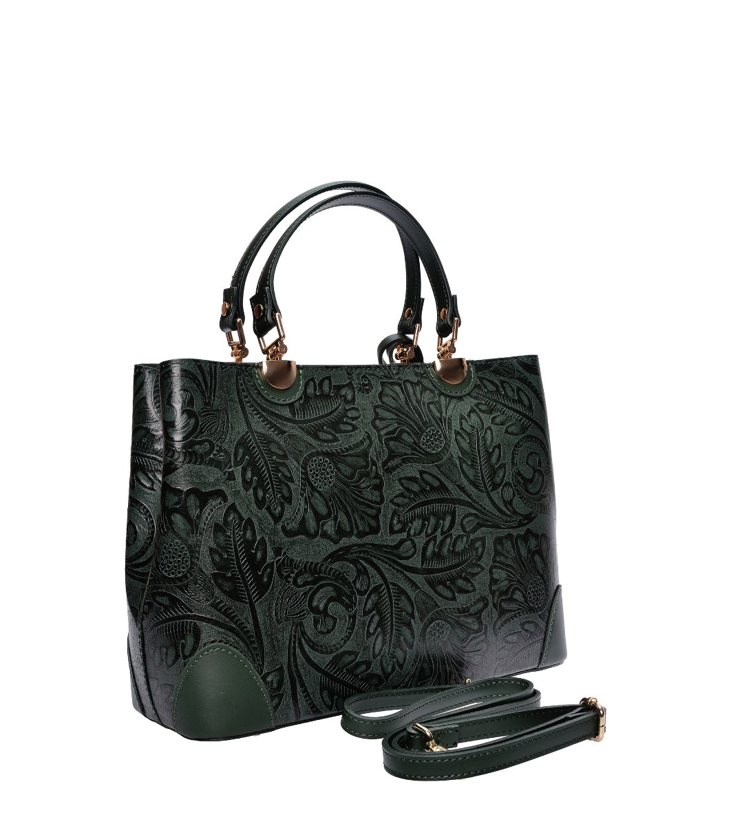 Geantă tote verde cu model floral în relief