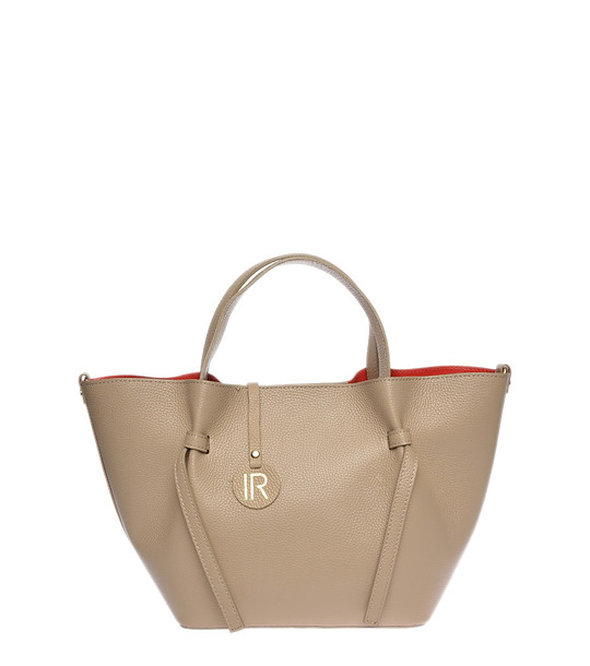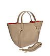 Geantă trapezoidală de damă, de culoare taupe, cu geantă de toaletă