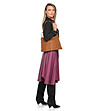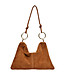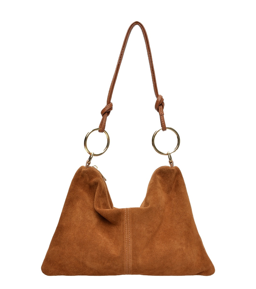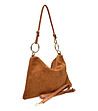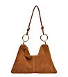 Geantă trapezoidală de damă din piele întoarsă, de culoarea coniacului
