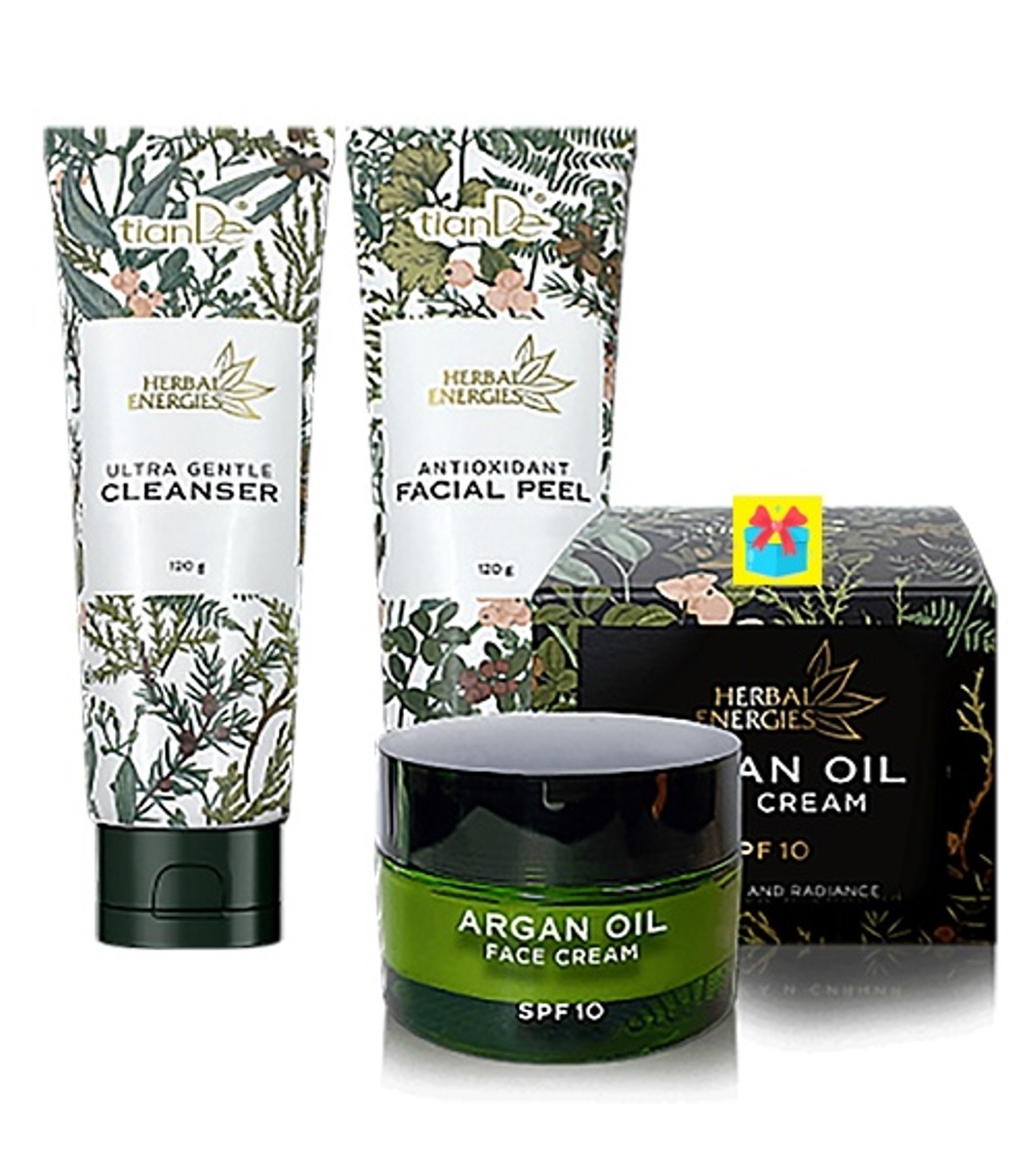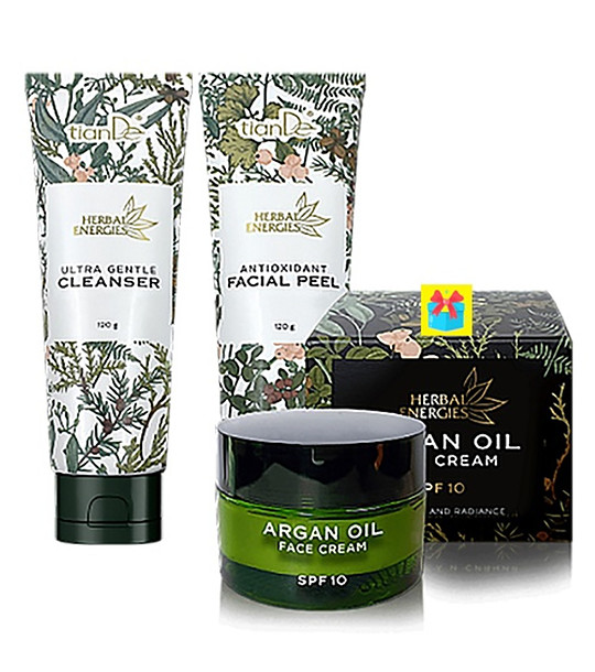 tianDe Gel de curățare ultra-moale, peeling facial antioxidant și cremă de față cu ulei de argan Setul include:
