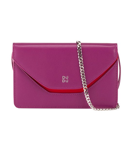 descriere_tehnică Brand: DuDu®Material: piele de vițel Nappa floră - Fabricat în ItaliaDimensiune: 19 x 12 x 3,5 cm, Lungime curea de umăr: 106 cmGreutate: 300 g Tip: Damă Structură generală: 1 buzunar interior Culori disponibile: Negru, Navy, Burgundy, Fuchsia. Toate multicolore