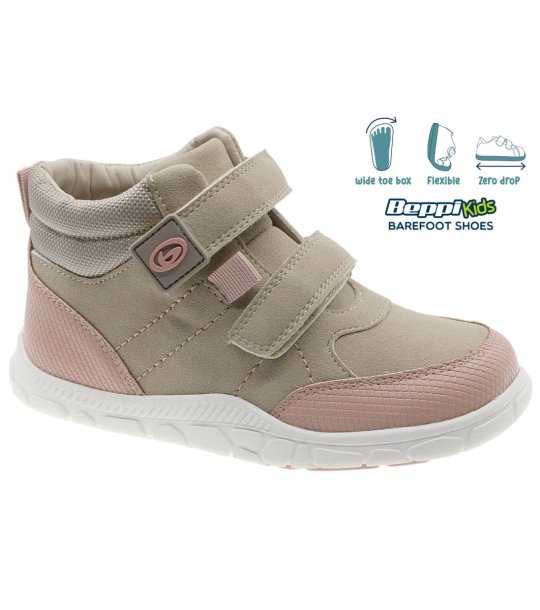Beppi Ghete bej pentru copii cu velcro pentru picioare late Ghete pentru copii cu greutate redusă și flexibilitate ridicată