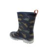 Ghete de cauciuc albastru închis pentru copii cu imprimeu cu dinozauri și talpă cu lumini LED