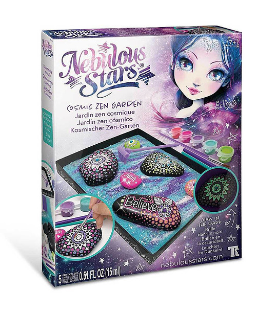 Setul contine: o cutie de depozitare pentru gradina de piatra Zen; 6 pietre; cinci culori de vopsele acrilice; trei culori de nisip; 46 autocolante care strălucesc în întuneric; paiete mici și pietricele; două instrumente pentru așezarea paietelor și pietricelelor; pensula; instrucțiuni de culoare; Povestea prințesei star Eclipsia în engleză.