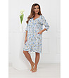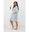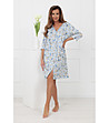 Italian Fashion Halat de baie albastru pentru femei din bumbac, cu mâneci 3/4 și model floral SAMOA Halat de baie până la genunchi.