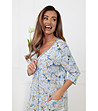 Halat de baie albastru pentru femei din bumbac, cu mâneci 3/4 și model floral SAMOA