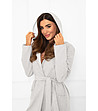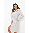 Italian Fashion Halat de baie pentru femei din bumbac, gri melanj, cu glugă Kalta Mâneci lungi