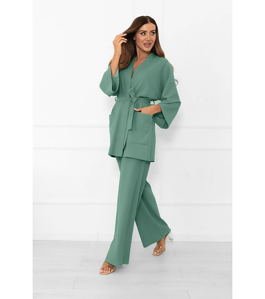 Italian Fashion Halat kimono scurt verde cu bumbac Bono Mâneci late 7/8