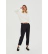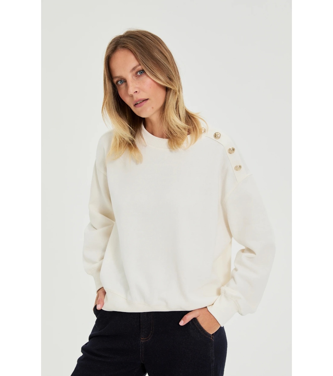 Moodo Hanorac alb de damă cu nasturi pe umăr Hanorac de damă cu mâneci lungi și decolteu rotund