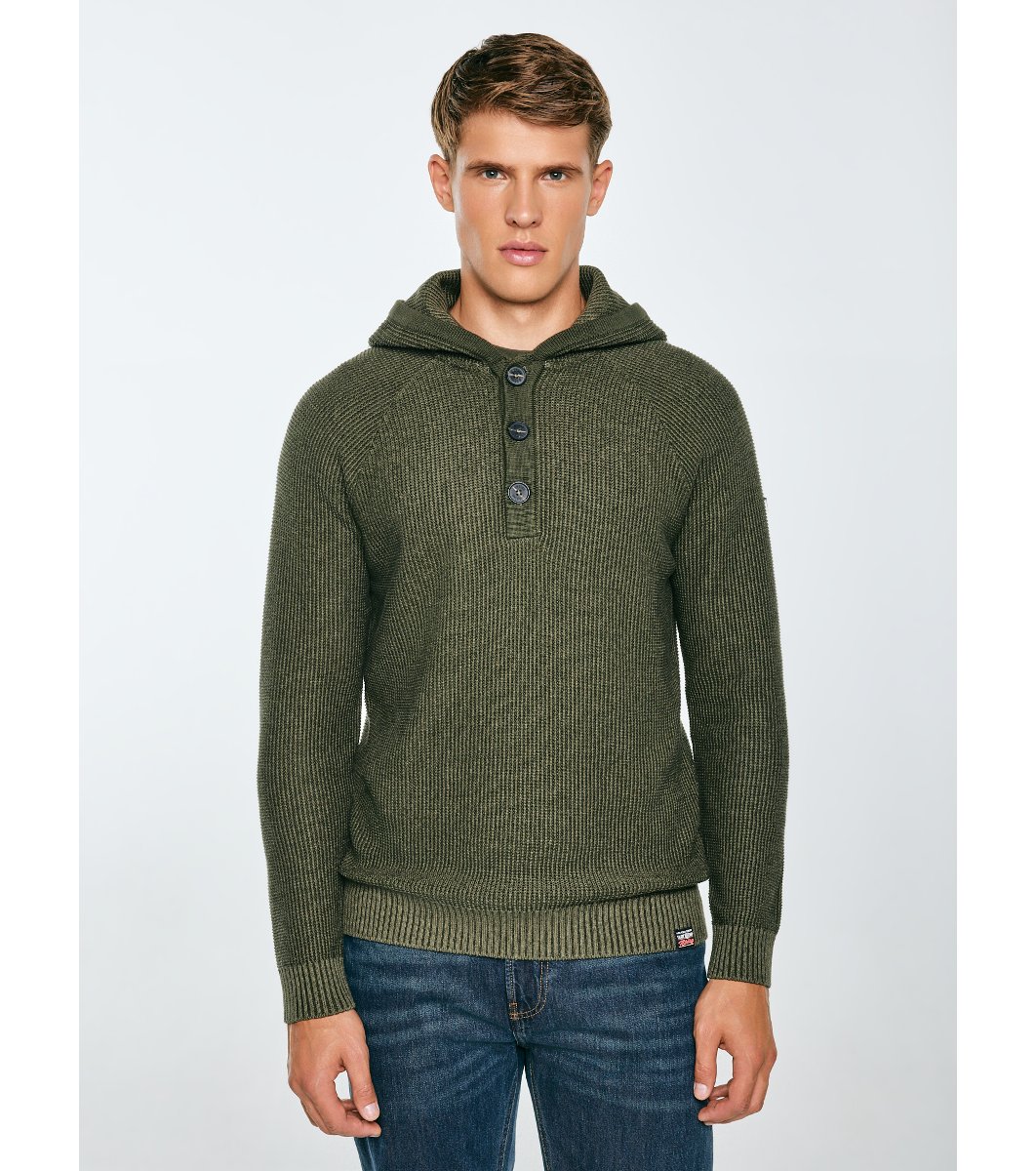 Big Star Hanorac bărbătesc verde închis din bumbac Carlson Glugă cu nasturi la decolteu
