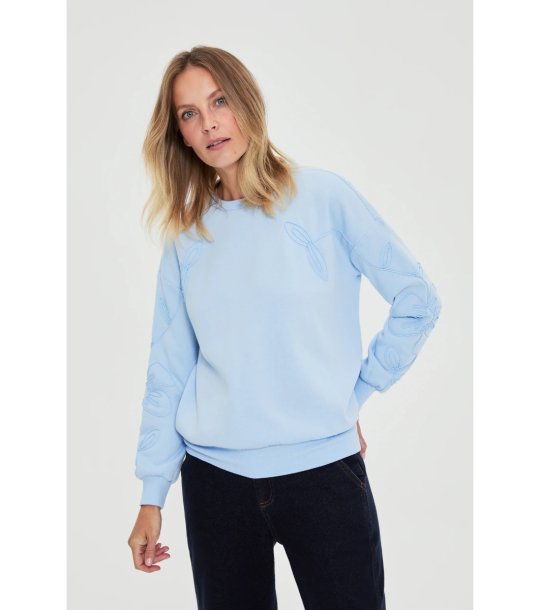Moodo Hanorac de damă albastru deschis cu aplicații florale Hanorac de damă cu decolteu rotund.