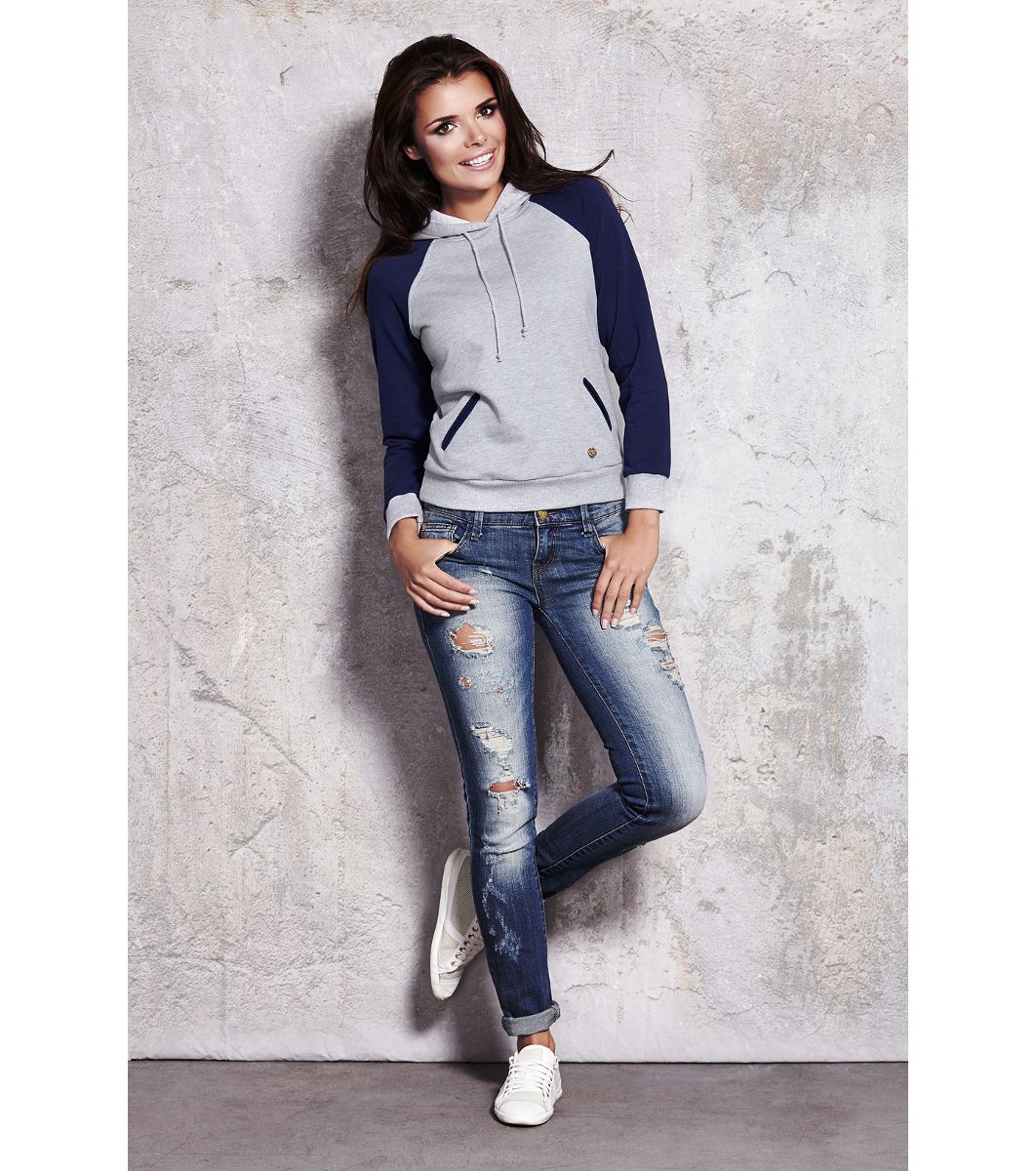 Hanorac de damă din bumbac gri și bleumarin Dorothy