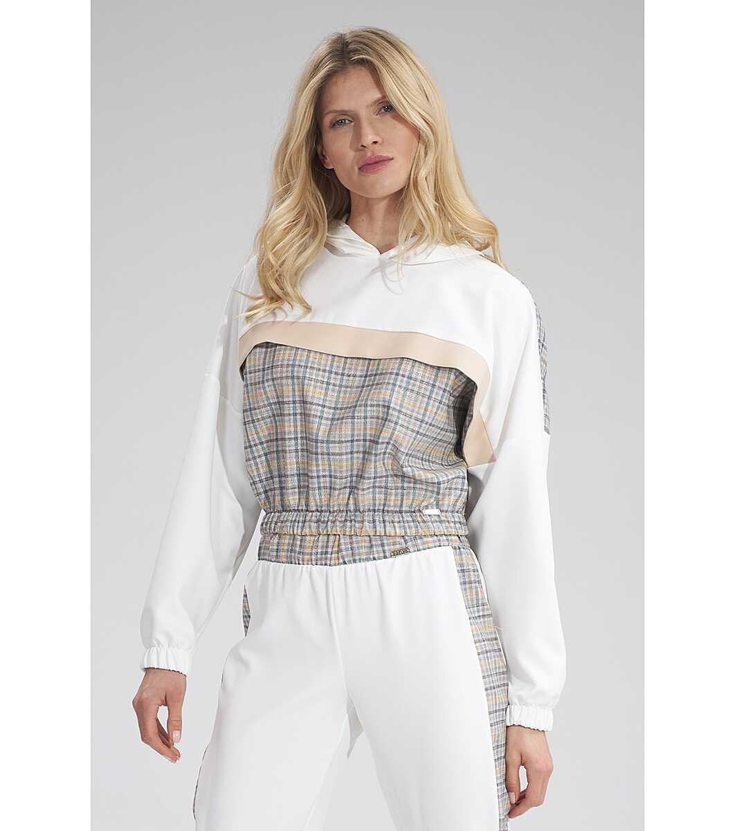 Figl Hanorac de damă ecru cu panou în carouri Oksana Mâneci lungi