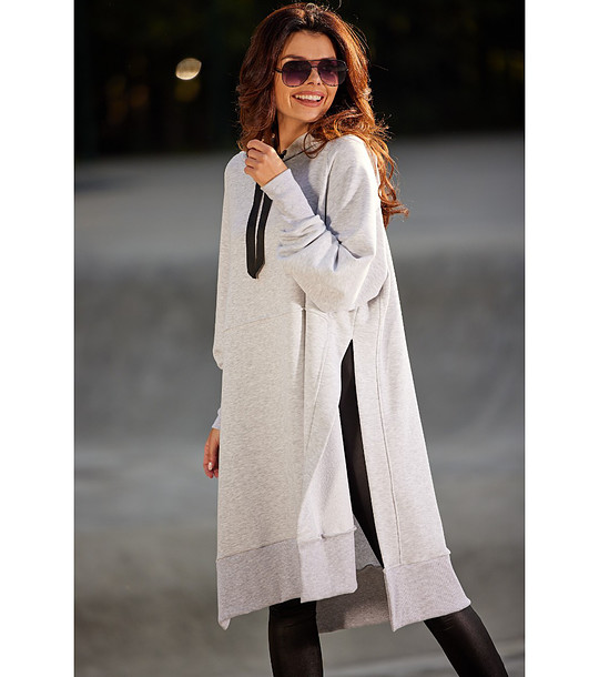Hanorac lung de damă din bumbac, gri melanj