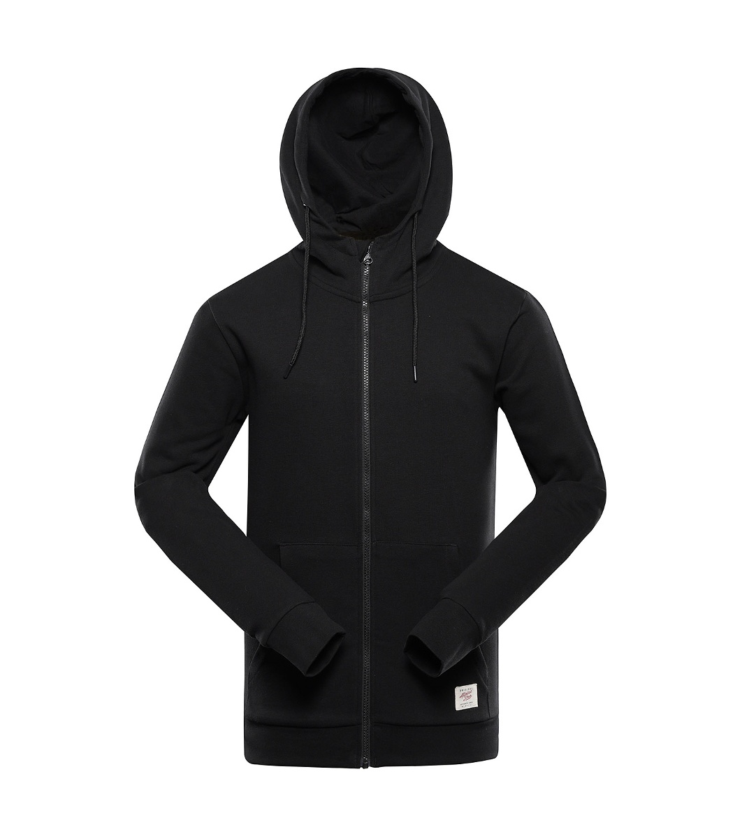 Alpine Pro Hanorac negru bărbătesc din bumbac LOKK Glugă cu șnur