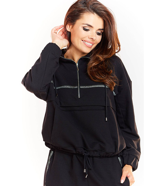 Infinite you Hanorac negru de damă din bumbac Axara Glugă cu fermoar