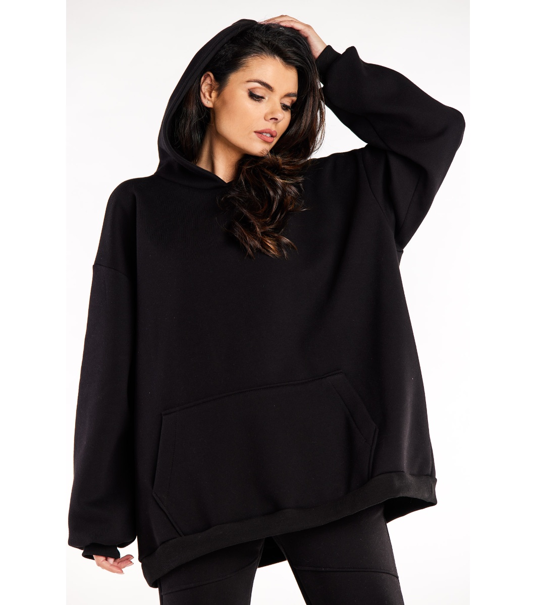 Infinite you Hanorac negru supradimensionat din bumbac pentru femei Mâneci lungi