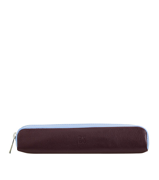 DuDu Husă de pix și creion din piele în visiniu și albastru Adăugați caracter stilului dvs. depozitând pixurile în această husă practică din piele naturală, cu un design curat și liniar.