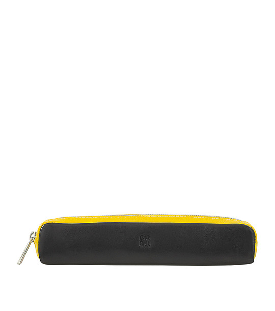 DuDu Husă din piele pentru pixuri și creioane în negru și galben Oferă caracter stilului tău depozitând pixurile în această husă practică din piele naturală, cu un design curat și liniar.< br /> Dimensiunea redusă îl face ideal pentru a fi purtat cu tine oriunde.