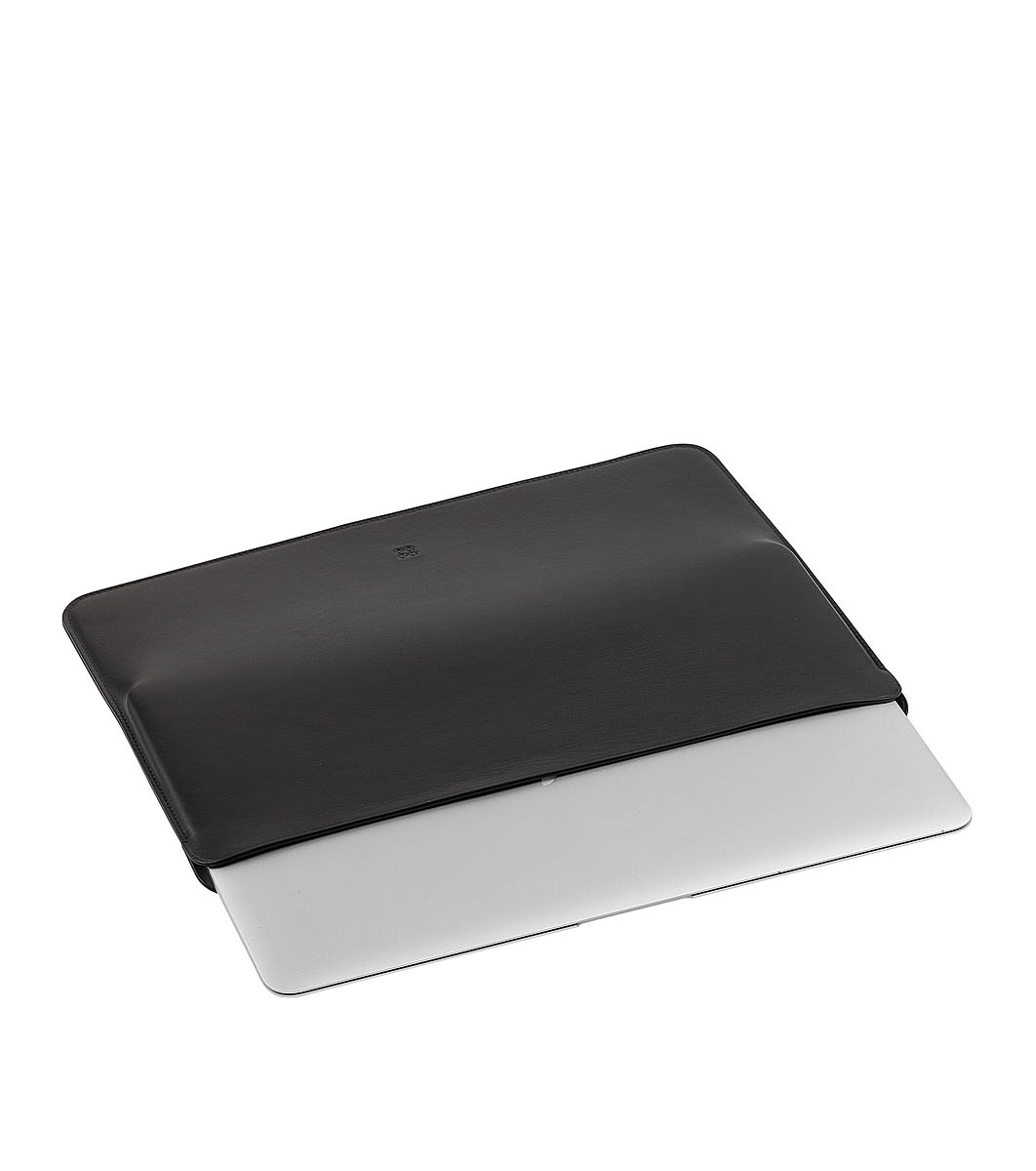 Husă neagră pentru laptop din piele naturală
