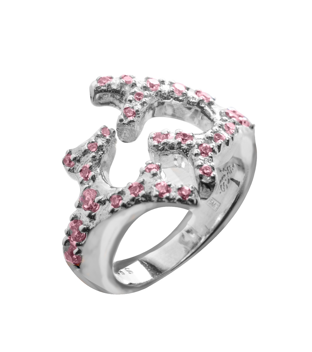 Inel elegant pentru femei, cu un design complex și multe cristale mici. Este realizat cu atenție la detalii, având o formă unică ce atrage atenția.