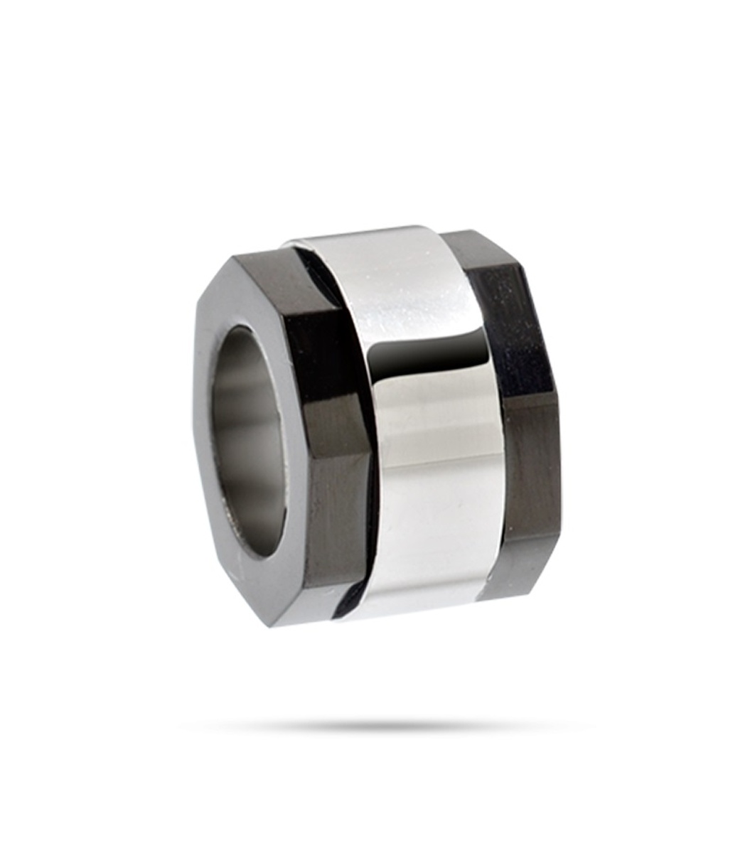 Inel bărbătesc din oțel, argintiu și negru, Sector