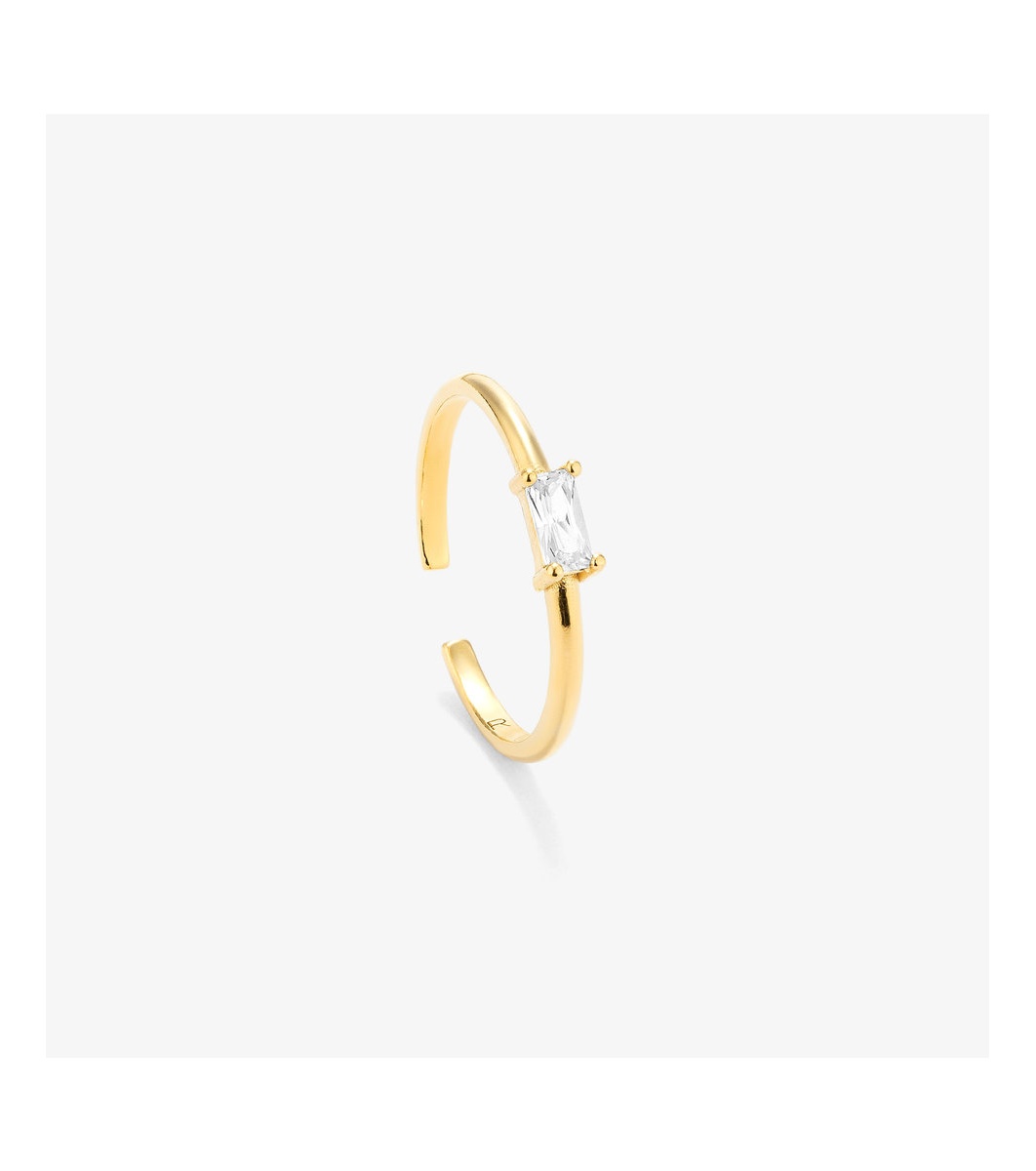 Acest inel elegant are un design deschis și este decorat cu o piatră de formă dreptunghiulară.