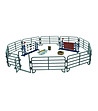 Setul include: 9 garduri gri, 1 poartă de gard, 2 obstacole de sărit, 1 ladă cu hrană pentru cai, 1 sac de hrană și 1 hrănitor.