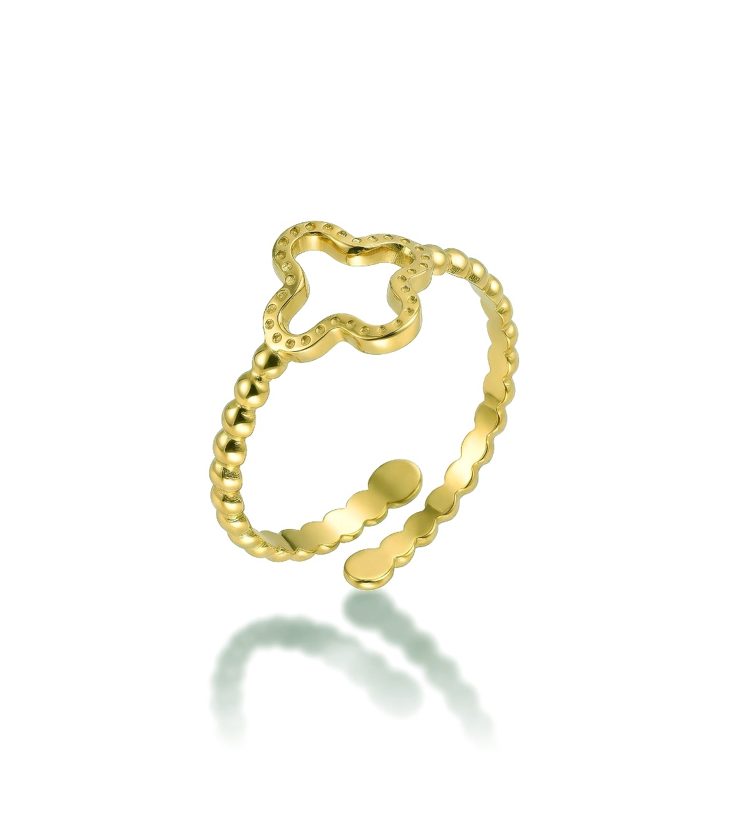 Inel de damă auriu cu trifoi cu patru foi