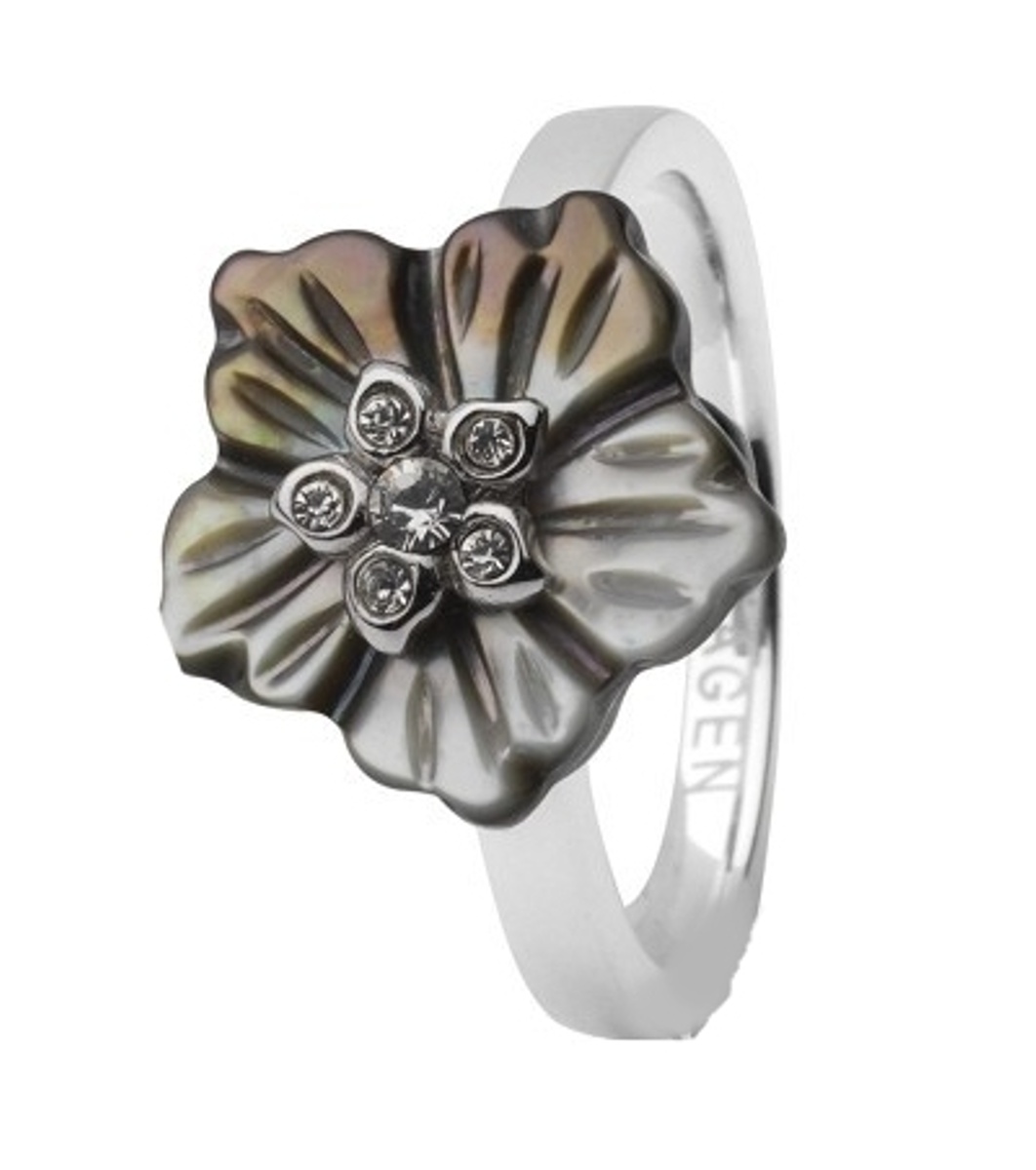 Inel elegant de damă cu element decorativ în formă de floare. Partea centrală este decorată cu pietricele mici care conferă un aspect sofisticat. Potrivit pentru diverse ocazii și stiluri.