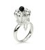 Inel elegant cu decor convex. Decorul include elemente cu design în relief și o mică piatră încorporată. Inelul are o suprafață netedă și strălucitoare.