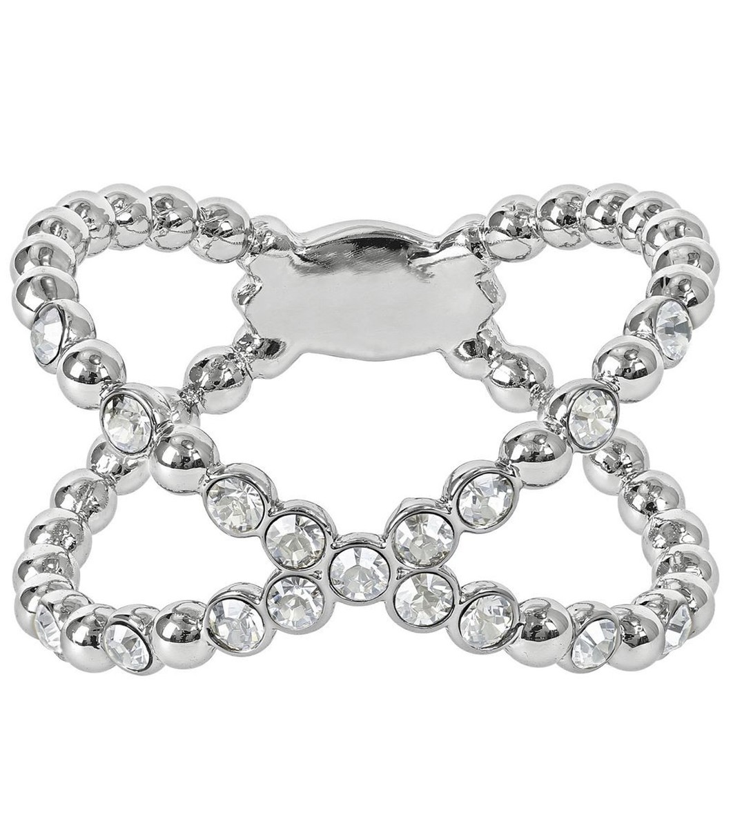 Inel elegant de damă cu două rânduri de elemente strălucitoare. Designul include cristale decorative, oferind un aspect sofisticat.
