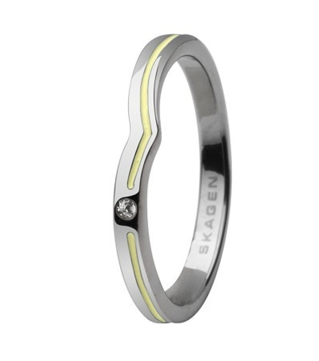 Inel elegant de damă cu un design curat și element decorativ. Este încrustată o piatră prețioasă, care îi conferă un aspect sofisticat.