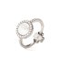 Inel elegant de damă cu centru rotund, încrustat cu pietre strălucitoare. Designul include detalii rafinate și elemente decorative.