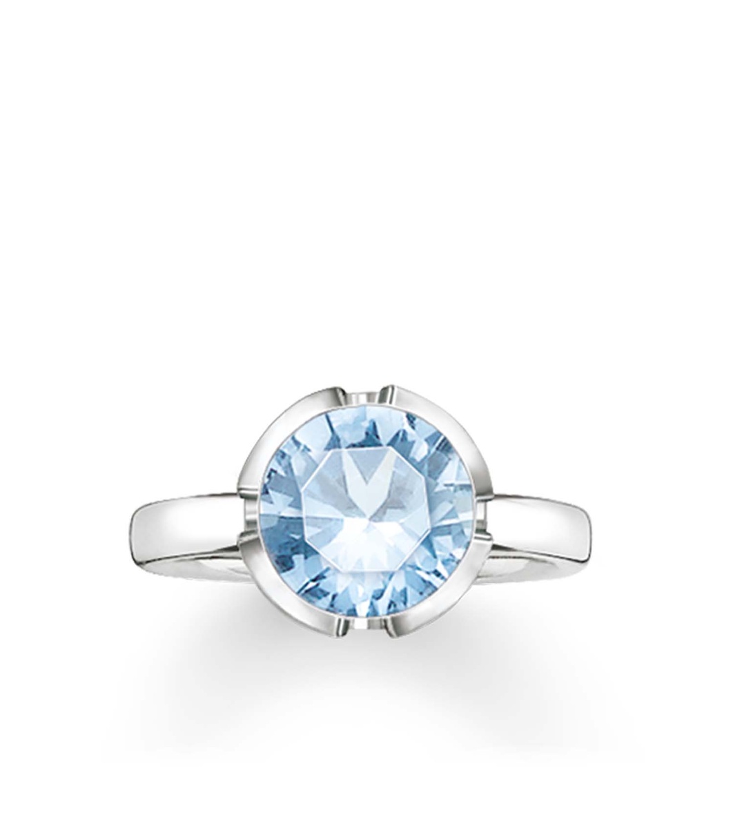 Inel elegant de damă cu o piatră rotundă mare în centru.