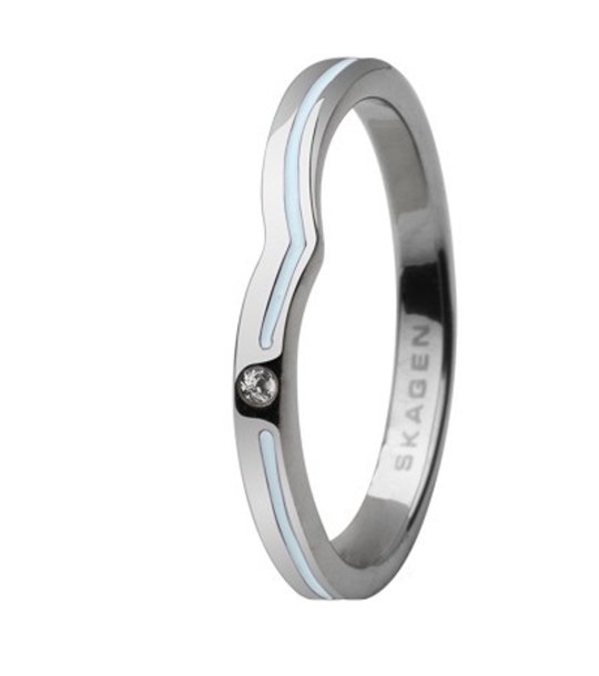 Un inel de damă sofisticat, cu un design elegant. Are o suprafață netedă, cu detalii delicate și o mică incrustație de piatră. Inelul este subțire și ușor, potrivit pentru uzul zilnic.