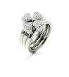 Inel elegant cu patru elemente în formă de inimă, încrustat cu pietre decorative mici.