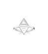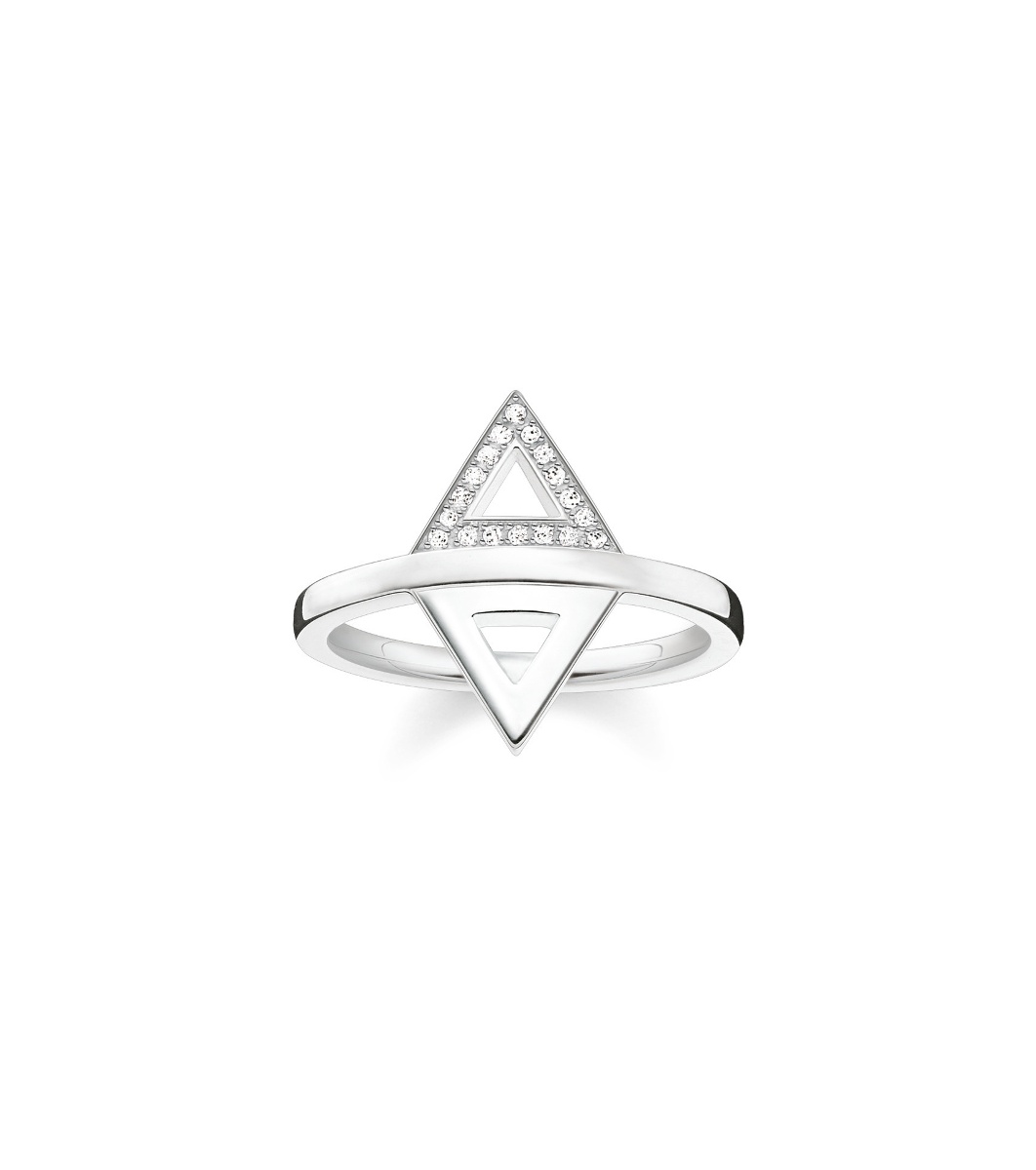 Un inel elegant, cu un design unic, cu două triunghiuri. Triunghiul superior este decorat cu pietre strălucitoare care adaugă eleganță aspectului. Potrivit pentru orice ocazie, acest inel este o completare perfectă pentru orice aspect modern.
