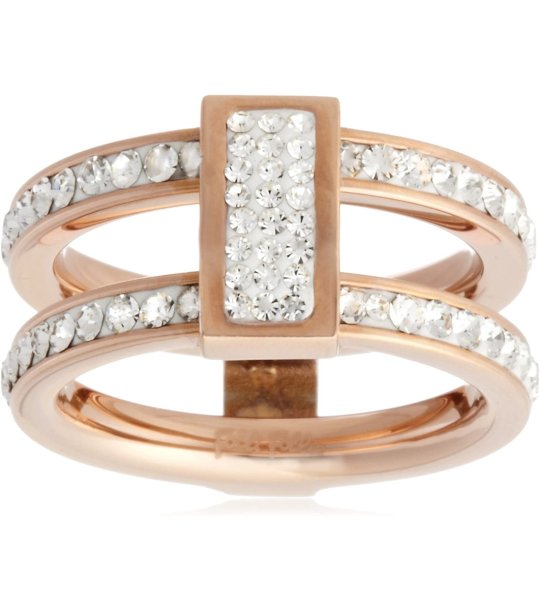Inel elegant cu bandă dublă și parte decorativă dreptunghiulară.