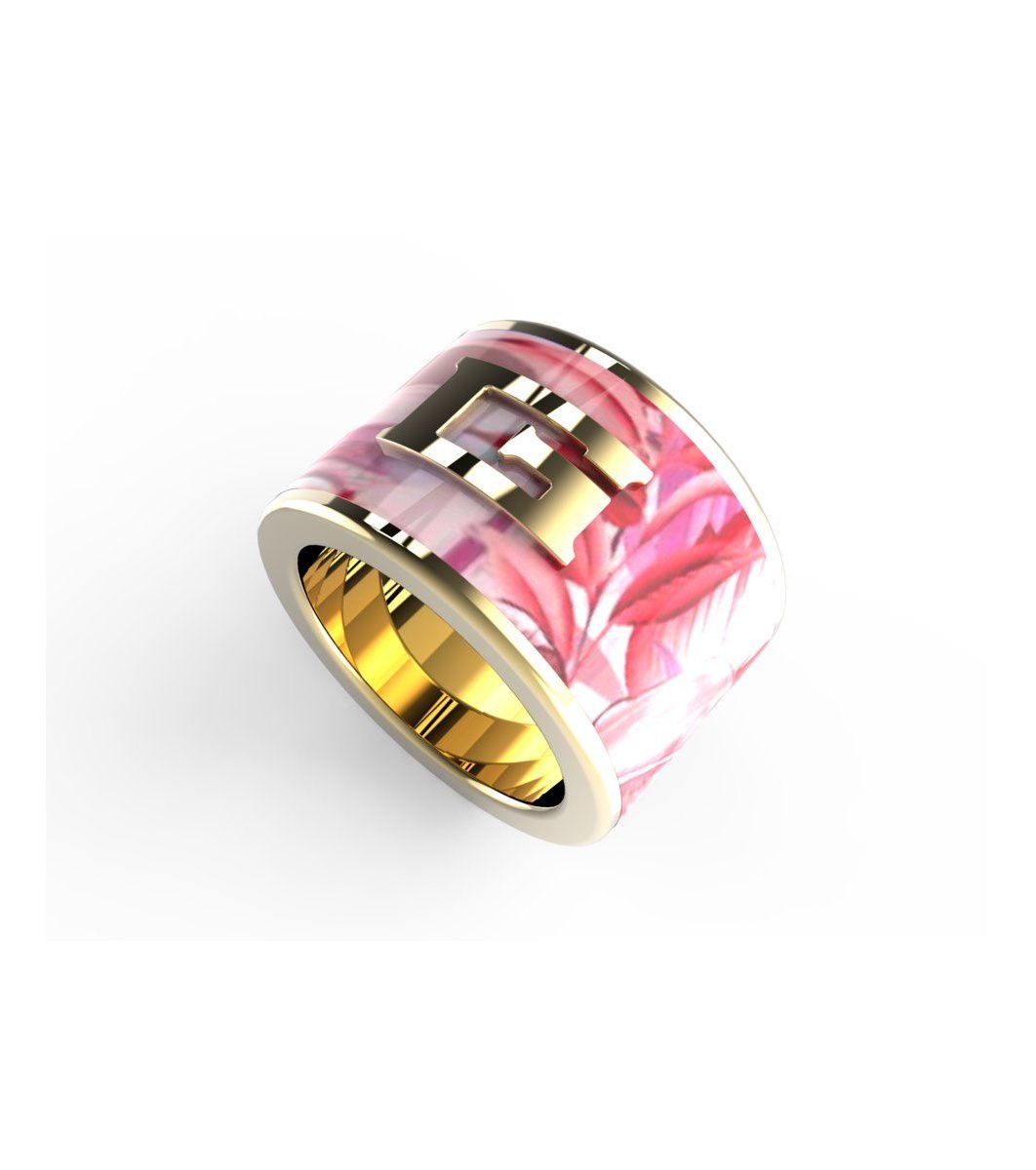 Guess Inel de damă din aur cu imprimeu roz Inel lat