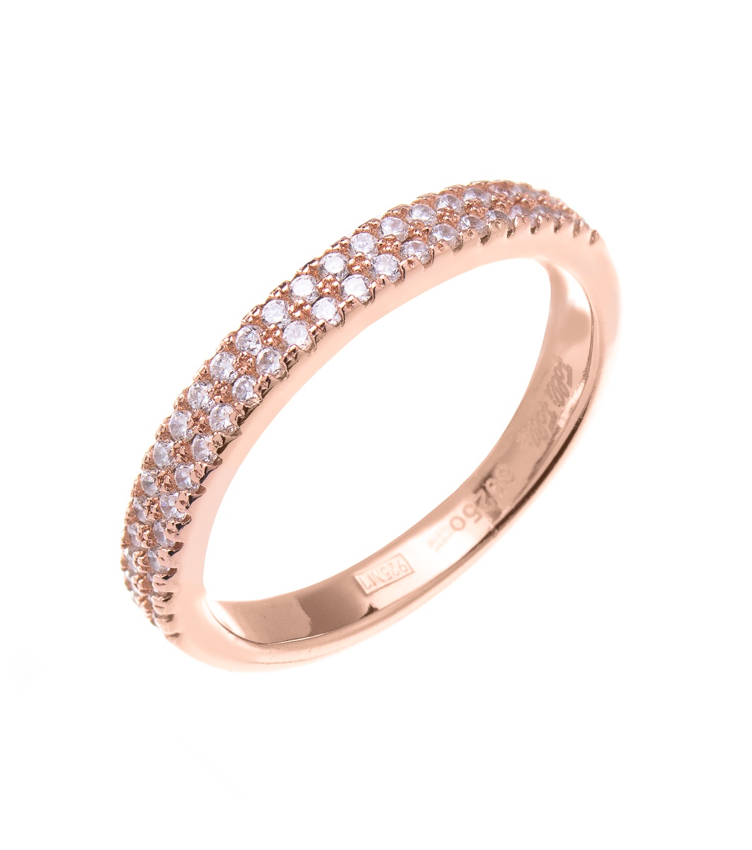 Inel elegant de damă cu pietre încrustate, aranjate pe mai multe rânduri. Designul este curat și modern, potrivit pentru ocazii speciale.