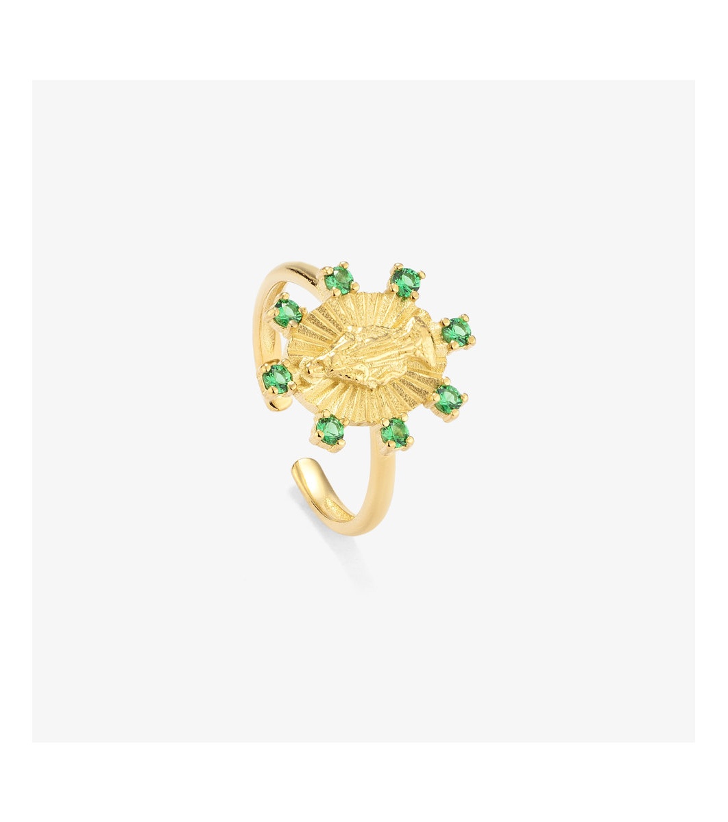 Inel decorativ cu figură centrală și pietre încrustate.