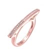 Inel elegant de damă, cu un design curat. Are o linie dreaptă, împodobită cu cristale mici, adăugând rafinament și strălucire.