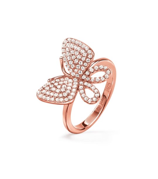 Un inel sofisticat cu un design unic, reprezentând un fluture. Decorul este acoperit cu numeroase detalii mici, oferind un aspect sofisticat și elegant.