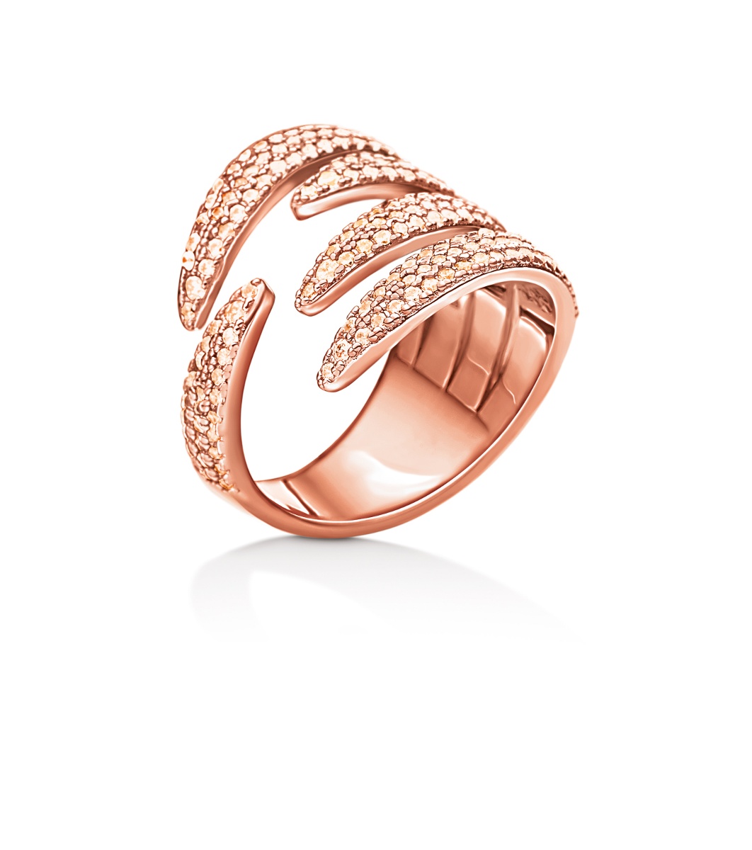 Folli Follie Inel de damă din aur roz cu incrustații de cristale, mărimea 52