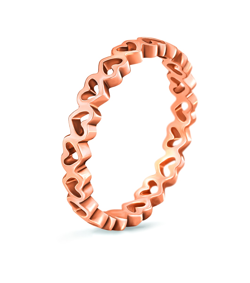 Un inel delicat de damă, cu o măiestrie rafinată. Inelul este decorat cu motive în formă de inimă, oferind un aspect romantic și elegant.