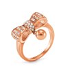 Inel elegant cu panglică decorativă decorată cu elemente strălucitoare. Include un element decorativ rotund care adaugă un accent suplimentar.