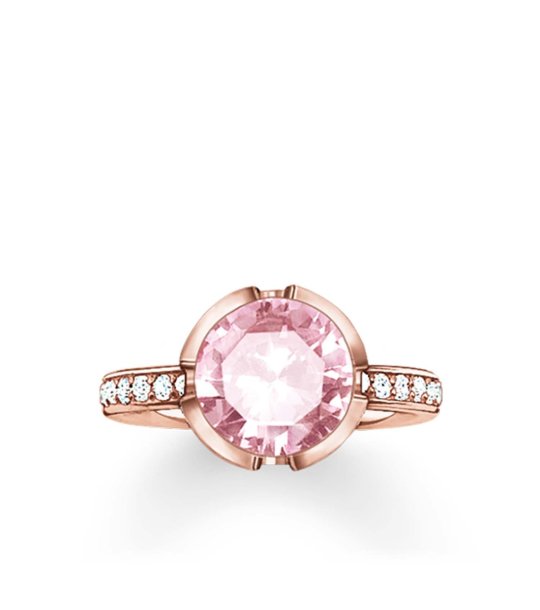 Inel cu un cristal oval mare central. Feroneria este decorată cu pietre mici strălucitoare pe ambele părți.