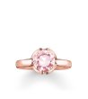 Inel elegant de damă cu o piatră rotundă situată în centru. Designul este curat și modern, potrivit pentru diverse ocazii.